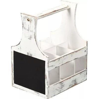 Dřevěný bílý stojan na příbory a dochucovadla Kesper s praktickou rukojetí a tabulí na křídu, rozměry 20x16 cm. Tento stylový a funkční příborník je ideální pro uspořádání...