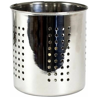 Praktický nerezový stojan na příbory a kuchyňské náčiní s průměrem 12 cm a výškou 13 cm. Díky perforovaným otvorům zajišťuje odvod vody a cirkulaci vzduchu, takže příbory...