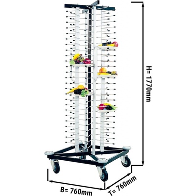 Popis - Talířový vozík - Ideální například pro restaurace a hotely - Pro 100 talířů o průměru 17 - 32 cm - 4 kolečka se 2 brzdami - Snadné použití - Snadné...