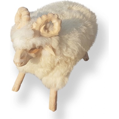 Stolička beran je vyřezaná z bukového dřeva a potažená na sedací části pravou ovčí kožešinou. Každý kus je originál – barevnost kožešiny se snažíme klientovi přizpůsobit. Foto...