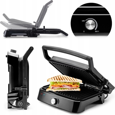 Elektrický kontaktní gril s nepřilnavými povrchem • 3 funkce: gril / sendvičovač / gril s rozšířenou deskou • příkon 2400 W • rozměry grilovací plochy 60 × 25 cm