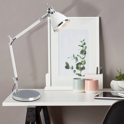 Stolní lampa s velkou stabilní základnou. Flexibilní rameno umožňuje nastavit lampu v libovolném úhlu. Svítidlo lze osadit LED žárovkami s paticí E27 a výkonem až 12W.