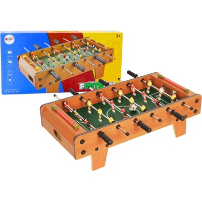 Robustní stolní fotbal, který lze flexibilně hrát na každém stole. Na své si přijdou malí i velcí fotbaloví fanoušci. Rychlá hra trénuje koordinaci ruka-oko a přináší spoustu zábavy. Hračka je vyrobena z lakovaného dřeva. Fotbálek je vybaven počítadly gólů. Rozměry...