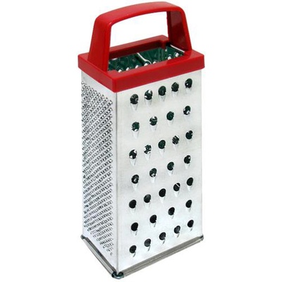 Čtyřhranné struhadlo se základními funkcemi strouhání a pevným držadlem. Lze strouhat na jemno, na hrubo a na plátky. Materiál - plast, plech. Barva stříbrná, červená. Rozměry -...