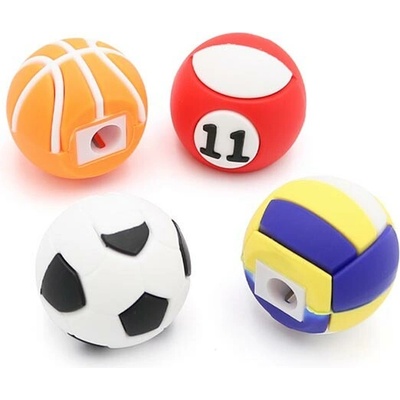 Dětské ořezávátko na tužky nebo pastelky ve tvaru sportovních míčů. pryžové tělo příjemné na dotek průměr otvoru: 8 mm designy míčů: Fotbal, Volejbal, Basketbal a...