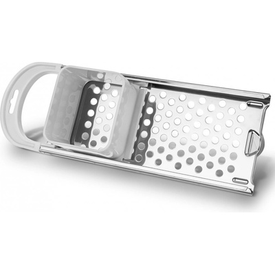 Struhadlo z nerezové oceli s rukojetí z polypropylenu. Lze mýt v myčkách.