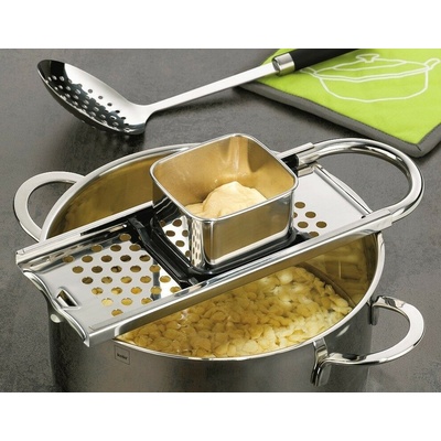 Cilio Struhadlo na sýr Deluxe je vyrobeno z nerezové oceli a má praktický zásobník. Jeho rozměry jsou 5x5x10x15 cm. Perfektní kuchyňský pomocník pro každou domácnost.