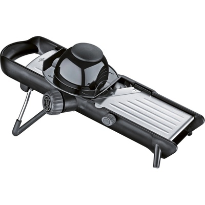 Sada na krájení zeleniny VARIO vyrobená z nerezové oceli a plastu. Sada obsahuje čtyři výměnné čepele, tloušťku plátků můžeme upravit mezi 1-5 mm. Kráječ má připevněnou nádobu...