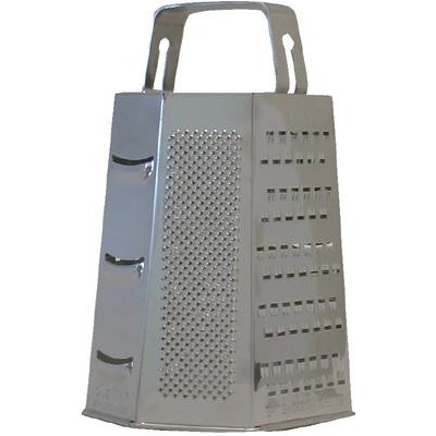Šestihranné struhadlo se základními funkcemi strouhání a pevným držadlem. Lze strouhat na jemno, na hrubo a na plátky. Materiál - nerez. Rozměry - 9,5 x 22 cm.