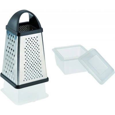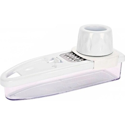 Struhadlo na sýr se zásobníkem nastrouhaného sýra. Materiál: polypropylen vyztužený skelným vláknem, polypropylen, ABS, nerez (301). Velikost: 12 x 11 x 10 cm (VxŠxH).