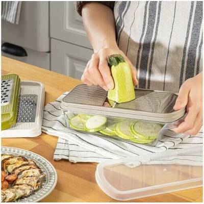 Podrobnosti o produktu OR144808 Obousměrné struhadlo s transparentním zásobníkem a dvěma plochami – jemnou a hrubou strukturou je doplněno protiskluzovými výstupky. Potraviny...