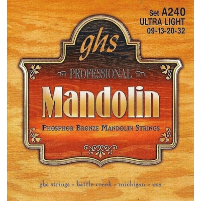 8-strunná ultralehká sada pro mandolínu - .009" (2), .013" (2), .020" (2), .032" (2). Fosforový bronz, kulaté vinutí, smyčkové zakončení a šestihranné jádro.