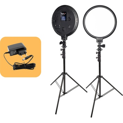 Stmívatelné dvoubarevné LED kruhové světlo Nanlite Halo 14 s napájením pomocí AC adaptéru. Součástí balení je také držák na telefon, make-up zrcátko, přepravní pouzdro a stolní...