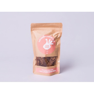 Květomluva Jerky krůtí sušené maso Objevte speciálně připravené krůtí maso vhodné pro dospělé i pro děti. Jedná se o jemnější maso s minimálním množstvím soli. Obsahuje pouze...