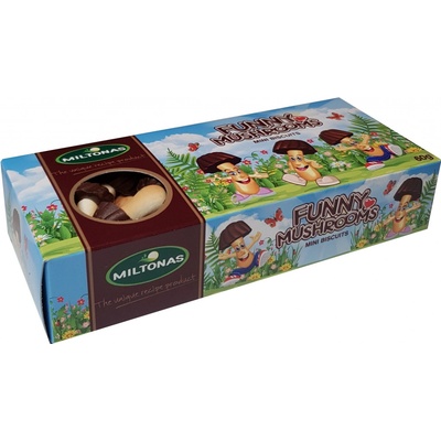 Miltonas Hříbečky MINI z mléčné čokoládové polevy a sušenky 170 g – Křehké sušenky ve tvaru hříbečků, obalené v jemné mléčné čokoládě. Lahodná sladká pochoutka, která potěší...