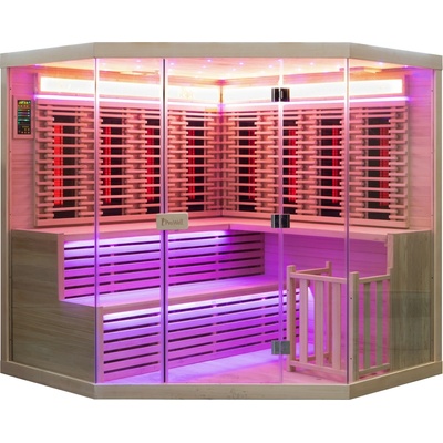 Interiérová sauna určená pro tři osoby. Karbonové a fullspektrální zářiče. Vyrobená z kvalitního dřeva, s hned několika barevnými módy osvětlení a ionizátorem kyslíku....