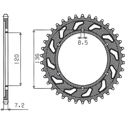 ocelová rozeta pro sekundární řetězy typu 428, SUNSTAR (57 zubů) [A] ©INZUN | All rights reserved