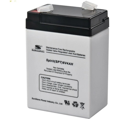 AGM akumulátor Sunstone Power SPT6-4 je bezúdržbový AGM (elektrolyt vsáknutý do skelné tkaniny - obdoba gelu) VRLA (uzavřená konstrukce - plyny uvnitř rekombinují) akumulátor...