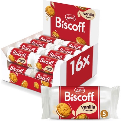Lotus Biscoff karamelizované sušenky s vanilkovým krémem Delikátně křupavé sušenky plněné jemným krémem s příchutí vanilky. Bez barviv. Bez aromat. Vhodné pro vegetariány a...