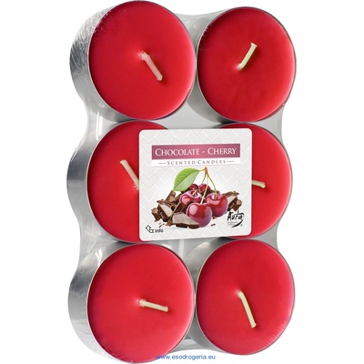 Přineste do svého domova sladkou a svůdnou atmosféru díky Bispol vonná čajová svíčka maxi Chocolate-Cherry 6 ks. Jedinečná vůně čokolády a zralých třešní vytváří příjemné teplo...