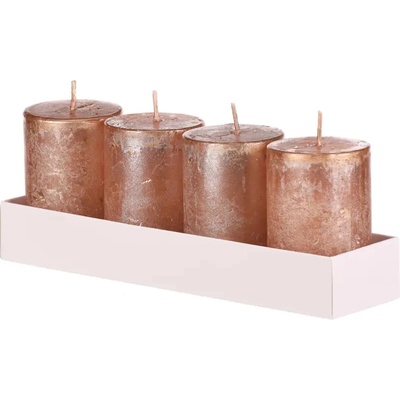 Rustikální adventní svíčky ve tvaru válce. Svíčky mají metalický povrch. Budou se vyjímat v moderním, dobovém i rustikálním interiéru. V balení jsou 4 kusy. Doba hoření: 21...