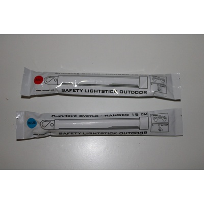 Svítící tyčinka 15 cm s háčkem používané AČR. Nouzové světlo pro veškeré aktivity. Doba svitu je 12 hod. při teplotách 20-30 °C. Různé barvy.