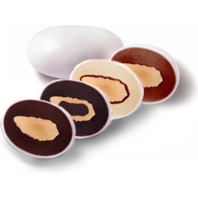 Pražená mandle obalená ve dvou vrstvách bílé a tmavé čokolády, zalitá cukrovou polevou PŘÍCHUŤ: čokoláda 2 vrstvy - bílá, tmavá ROZMĚR: cca 3 x 1,5 cm POČET MANDLÍ: cca 170...