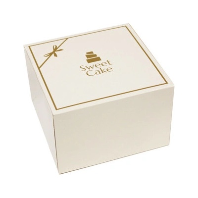 Svatební krabička na dort se zlatým potiskem a stylovým okrajem. Ideální pro balení dortů a zákusků. Elegantní krabička je vhodná na svatební výslužky. Obal je vyroben z...