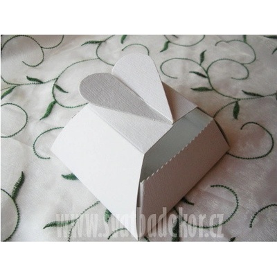 Bílá perleťová krabička ve tvaru kapsičky s krásným vytlačeným ornamentem. Krabičku naplněnou svatebními mandlemi, čokoládovými srdíčky, různými sladkostmi nebo malým...