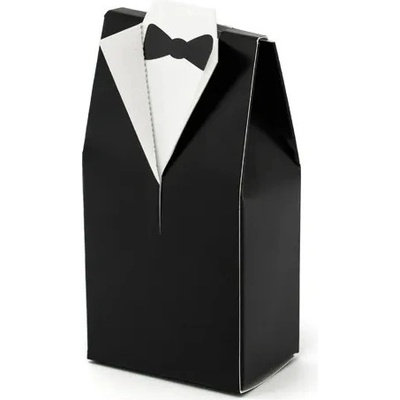 Černá krabička ve tvaru obleku ženicha s motýlkem je vhodná na dárečky pro hosty. Krabičku naplněnou svatebními mandlemi, čokoládovými srdíčky, různými sladkostmi nebo malým...