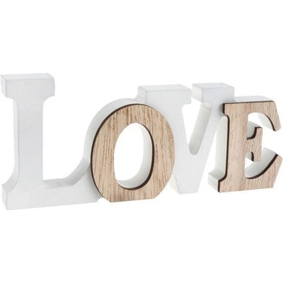 Dřevěný nápis LOVE v barvě bílého a hnědého dřeva je opravdu hezká dekorace na stůl pro svatební nebo Valentýnskou párty. Velikost nápisu: 14 x 1,2 x 6cm