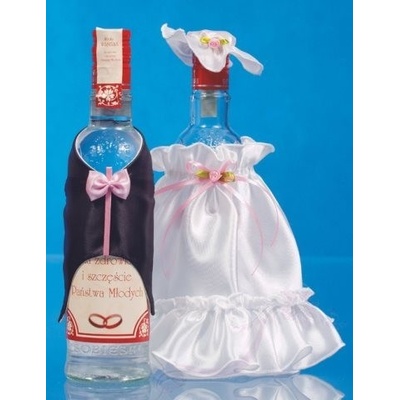 Ozdoba na lahve, šaty a oblek, bílo-růžová