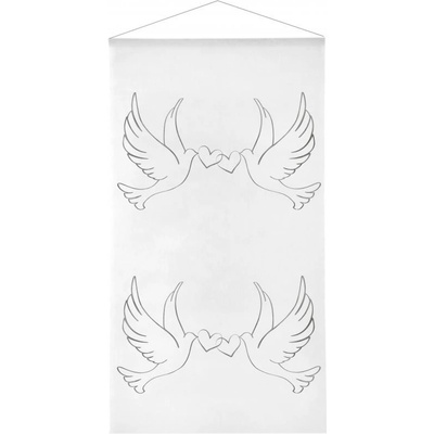 Závěsný svitek s holubicemi. Materiál: netkaná polyesterová tkanina. Rozměr: 100 cm x 2,5 m.