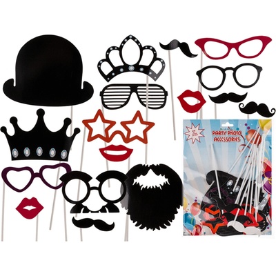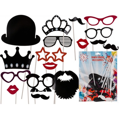 Chystáte s přáteli bláznivou párty a chcete si udělat nějaké fotky na památku? Kupte si tuto sadu párty foto doplňky 17ks - Moustache & Lips. Jedná se o sadu humorných...