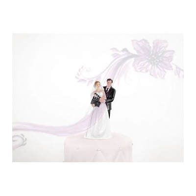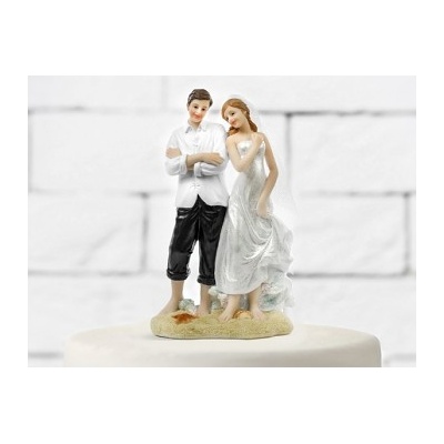 Netradiční svatební figurka. Vyrobená z polyresinu - odlehčená keramika. Figurka je lehká, neponičí váš dort. Výška figurky: 10cm