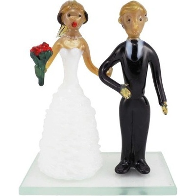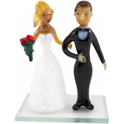 Ručně vyrobené figurky na svatební dort od českých sklářů - brunet s motýlkem & blond nevěsta.