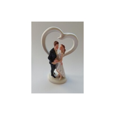 Svatební figurka silueta nevěsty a ženicha umístěná v srdci. Figurka je určená k dekoraci svatebního dortu, je vyrobena z glazovaného porcelánu a má velmi kvalitní zpracování. Rozměry: 9,5 x 14,5 cm Váha 227 gramů