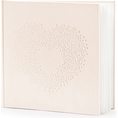 Svatební kniha hostů ve světle růžové barvě s ražbou ve tvaru srdce. Nechte si zapsat něco krásného od svých blízkých a hostů. Počet stránek: 22 stránek Velikost: 20,5 x 20,5 cm