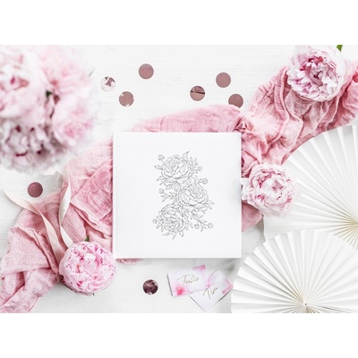Svatební kniha hostů bílé perleťové barvy s krásným reliéfem pivoněk. Svatební kniha nabízí prostor pro vzkazy a přání Vašich hostů. Svatebčané mohou vzkazy obohatit...