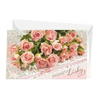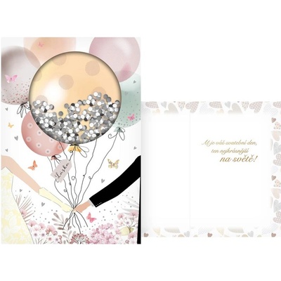 Text na přední straně přání: Láska Text uvnitř přání: Ať je váš svatební den, ten nejkrásnější na světě! Přání je baleno v sáčku, součástí balení je i dopisní obálka....