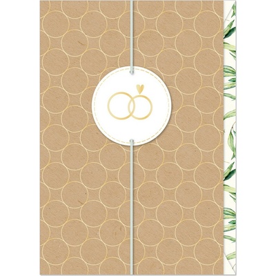Dvě srdce, která se proplétají jako osudové cesty novomanželů, jsou středobodem tohoto nádherného svatebního přání. Každý zlatý akcent i drobné ornamenty jsou promyšlené tak,...