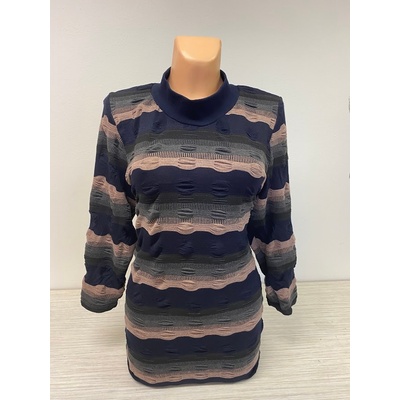 Delší svetřík XEVA 44, nádherný materiál barva šedo černá kombinace bude ladit s kalhotami v podobném tónu.