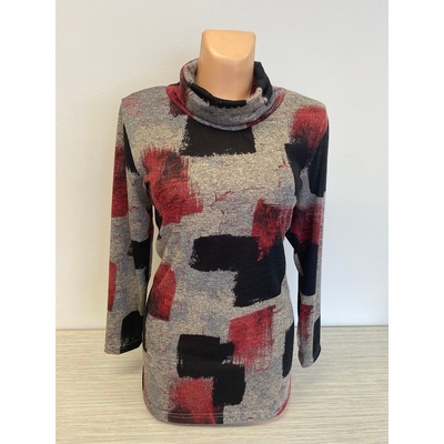 Žakárovný pulovr i v prodloužené délce vyberte si červený, nebo šedo černý , úplet.