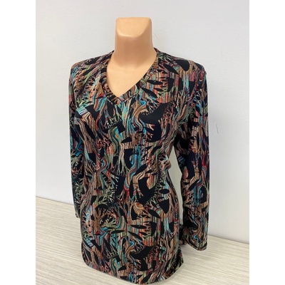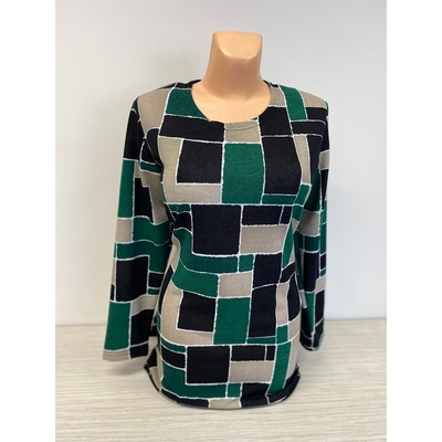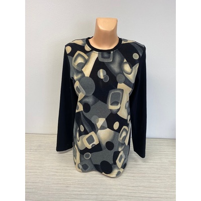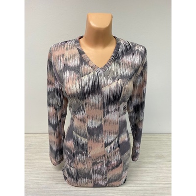 Stylový pulovr s dlouhým rukávem a kulatým výstřhem. Na první pohled zaujme moderním abstraktním vzorem v odstínech černé , béžové, bílé a světle hnědé, který dodává modelu...