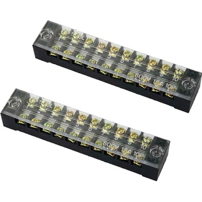 Šroubovací svorkovnice s jmenovitým proudem 15A, dodávané v sadě 2 kusů. Elektrikářské propojky "čokolády" s paralelním - přímým propojením s otvory pro uchycení pomocí...