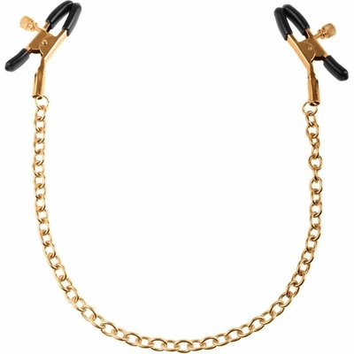 Svorky mají nastavitelnou sílu stisku a jsou ozdobené střapci ze zlatých řetízků – poslouží nejen k BDSM hrám, ale i ozdobení ňader. Mají gumové čepičky pro pohodlnější nošení....