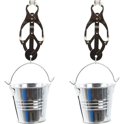 Svorky na bradavky s kýblíkem do kterého si můžete přidávat zátěž. Třeba dobrý nápoj pro společnou erotickou hru. Charakteristika - Kbelíkové svorky na bradavky - Materiál:...