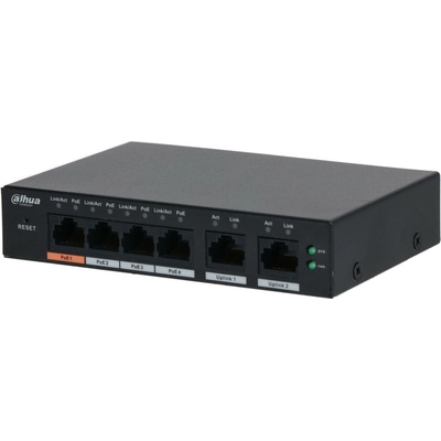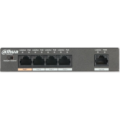 Průmyslový switch Dahua se čtyřmi PoE porty (z toho dva podporují Hi-PoE napájení max. 90 W/port), dvěma SFP porty a jedním gigabitovým portem pro uplink. L2 managovatelný...