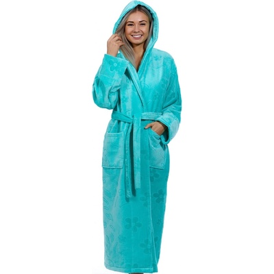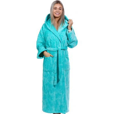 Zelinkavý dlouhý župan do porodnice na kojení z extra foroté KVĚTINOVÝ VZOR Župan na kojení je velice kvalitní z jemné teplé silné froté 100% bavlny s hlubokou kapucí, který má...