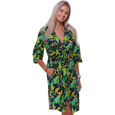 Zelinkavý luxusní dlouhý župan pro ženuna kojení z extra froté NORSKÉ PRUHY 1ZF3027 zelená
